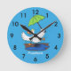 Funny duck with umbrella dancing cartoon round clock