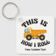This funny gift for a dump truck driver features a yellow dump truck inside the hilarious phrase This is How I Roll. A cool pop culture reference for a driver who likes modern humour. Cute personalised keychain for drivers with their custom text.