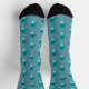 Show your unique fashion side wearing these Funny Dusty Blue Teal Hand Print Pattern Socks. Each sock is designed with a blue background. You can customise and change to any colour. The hand print is neon like aqua teal turquoise pattern on the socks.