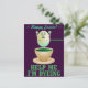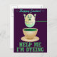 This funny Easter design shows an Easter egg being dipped into a saucer of green dye with a scared look on its face and its arms in the air. The text says, "Help me. I'm dyeing." This is a humourous cartoon for anyone who likes to paint Easter eggs and loves silly puns. This postcard also says "Happy Easter!" at the top, but you can customise that part to say anything you want.