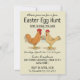 Funny Easter Egg Hunt Invitation with a cartoon of a mother hen saying to her rooster husband: "Time to hide the kids." Because it's Easter time and she decorated the unborn chicks for an Easter egg hunt. Ready to be personalised with your own text.