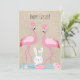Funny Easter flamingo eggs and bunny Holiday Card