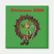 Whimsical male elf sitting on a poinsettia wreath holding a candy cane Christmas Holiday refrigerator magnet. You can change the text to any message you like. To further customise the text, click on Customise. Please visit my gallery to see more Christmas and Holiday cards and gifts. Thanks for stopping by Smilin' Eyes Treasures!