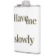 The flask itself is fine. It’s a cheap flask, obviously bought in bulk, however am prepared to overlook that. Given that it is a personalized item, I would have liked to have seen gift boxing instead of the generic packaging. Terrible printing, and/or quality. It’s a cheap, tacky vinyl. It is not cut straight and is also applied in a way that it is overhanging the bottom, causing the glue to catch on items and it will eventually roll and tear, damaging the wrap.