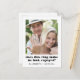 A funny photo engagement postcard announcement featuring a picture of the two of you and your engagement ring and "does this ring make us look engaged" in bold modern typography. Add your first names and a personalised message, such as stay tuned for the wedding date or save the date details.