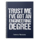 Trust Me I've Got an Engineering Degree. A graduation humour notebook gift for a funny engineer after they graduate college or university. Customise with your name or other text.
