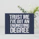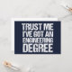 Trust Me I've Got an Engineering Degree. A graduation humour card in navy blue for a funny engineer after they graduate college or university.