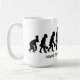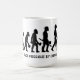 This funny and hilarious design features a common black and white silhouette graphic of Darwin's the evolution of man. The catchy graphic however has each figure carrying a coffee mug, with a monkey balancing one on its head. The caption says "Made possible by coffee". Personalise this with a new phrase or keep it the same. Enjoy your next cup of java, coffee, caffeine, tea, while enjoying this edgy and creative design. Makes a great gift for anyone and is available in multiple styles, colours, and sizes of cups and mugs.