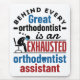 Funny orthodontics assistant design that says, "Behind every great dentist is an exhausted orthodontist assistant." Great appreciation gift idea.