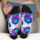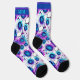 These crew socks are a quirky and fun addition to any wardrobe! Printed with eco-friendly water-based inks, they feature a signature 360-degree print that wraps your feet in a vibrant design of stylised eyes and cartoonish teeth. The background is a mix of blue and purple hues, making the eyes and teeth pop with their bold outlines and colours.