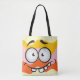 Funny face smiling colourful pattern orange yellow tote bag