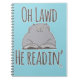 A funny fat cat super choky boi Oh lawd he reading meme inspired chucky reader feline goofy kitty humour design cartoon art lined blank book journal notebook. Get a fun reading cat design notebook today.