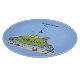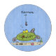 Funny fat hungry green fish fishing cartoon cutting board