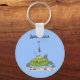 Funny fat hungry green fish fishing cartoon key ring