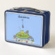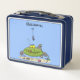 Funny fat hungry green fish fishing cartoon metal lunch box