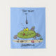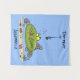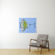 Funny fat hungry green fish fishing cartoon tapestry
