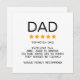 Funny 5 Star Review Dad design depicts 5 yellow stars and the funny phrase "Dad: Top-notch dad! Excellent DNA. Grill game is strong. His dad jokes are so punny they should be illegal! Would highly recommend!" This humorous dad design makes a great gift for dad on Father's Day, dad's birthday, or any time of the year you want to show love and appreciation to him.