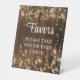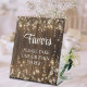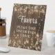 Funny Favours Signature Script Wood String Lights Table Sign - This elegant brown wood and white Table Sign, featuring lovely string lights and white floral can be personalised with your Wedding details (the product is not actually made from wood).