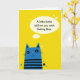 Whether they're recovering from an illness or are just down in the dumps this funny greeting card will bring a smile to their face. This cute card features a cheery yellow background and a cute cartoon cat in blue and black. The message on the front reads: A little birdie told me you were feeling blue. The inside reads: So I ate him! Hope you are feeling better soon!