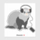 Customisable fun ferret sticker for a music lover who also loves ferrets. This musical ferret design features a vector illustration of a cute fluffy ferret wearing big headphones and listening to its favourite songs on its own phone. This fun sticker will also make a great gift for a musician who has a pet ferret.