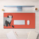 Customisable fun ferret desk mat for a music lover who also loves ferrets. This musical ferret design features a vector illustration of a cute fluffy ferret wearing big headphones and listening to its favourite songs on its own phone. This fun design will also make a great gift for a musician who has a pet ferret.