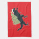 There is something undeniably fun about mixing the Jurassic era with December traditions. This illustration features a funny looking dinosaur who is taking his festive duties very seriously. Donning a classic red Santa hat, this little guy is trekking through the winter vibes carrying a massive Christmas tree on his back.