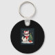 Funny Festive Sunglasses Dog with Christmas Tree C Key Ring
