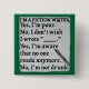 If you're a fiction writer / author, you've likely heard all the questions answered on this funny paper design. Now, you can save time conversing with the jerks who ask these inane questions by wearing the answers on this button. That means more time for you to hide out in your office lair, writing bumbling characters based on these buffoons. The button shows a faint, grayish notebook page and pen with these words: I'm a fiction writer. Yes, I'm poor. No, I don't wish I wrote "___." Yes, I'm aware that no one reads anymore. No, I'm not drunk.