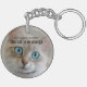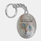 Keychain featuring an original fine art painting of a cute kitty with your custom (funny or other) texts.