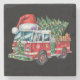 Funny Firetruck Santa Hat Christmas Tree Lights Stone Coaster