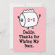 Celebrate a special milestone with this Funny First Father's Day Card—a cheeky and heartfelt way to honour the amazing dads out there, especially new fathers. This playful card features the humourous message: “Daddy, Thanks for Wiping My Bum”, making it a perfect gift from a baby son or daughter. Whether it's Daddy’s first Father's Day, his birthday, or just a sweet surprise to brighten his day, this card is sure to make him laugh and feel appreciated.