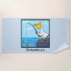 Funny fishing pelican cartoon beach towel