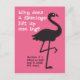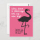 Funny flamingo riddle "Why does a flamingo lift up one leg?" is fun for anyone but especially fun to send to grandkids or children. Black flamingo silhouette illustration on a bright pink background with a fun font.