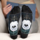 Funny “Fleece Navidad” Llama with Stripes on Blue Socks