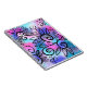 A funny little bird, lovely floral elements, and a little heart on a pink, purple and turquoise background.