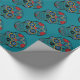 Funny Floral Skull Teal Gift Wrapping Paper