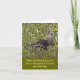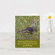 Notecard features a good-sized, unusual looking bird (sited in Costa Rica) out in a field. The "dreamy-eyed bird with long lashes and a face that appears "flushed" seems to be looking directly into the camera. "Pardon my flushed face, but I am so embarrassed--I missed your birthday!" is the (customisable) text on front and inside: "I can be such a bird-brain! Hope you had a good day. Happy Belated Birthday, My Friend" (also customisable).
