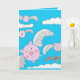 This colourful greeting card features my design of happy looking flying pigs and a bemused looking Crow. The editable text inside reads “ May all your dreams come true”