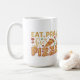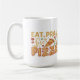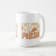 This hilarious design declares your true devotion to the one and only pizza! "Eat, Pray, Love Pizza" is displayed in a fun and colourful font, with each word bursting with a different vibrant hue. The design is surrounded by a celebration of all things pizza! Slices dripping with melty cheese and your favourite toppings, or perhaps cartoon slices with expressive faces, could adorn the shirt. This Mug is a must-have for any pizza enthusiast who prioritises enjoyment in all its cheesy glory.