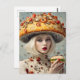 A funny woman with a mushroom sandwich hat and a sandwich in her hands AI generated art