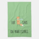 Versatile and funny quote usually attributed to MOM but just as useful for roommates or coworkers. Hand drawn whimsical fox in scarf illustration with " for fox sake - do your dishes" text in modern casual font on green background