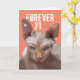 Forever 21?! This hairless cat with old lady makeup is forever 21... with 100 years of experience. We can still think young even though we've been around forever. Funny card for baby boomers who still act like they're 21(I know from personal experience).