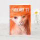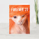 Forever 21?! This hairless cat with her bright red wig is forever 21... with 100 years of experience. Great card for aging baby boomers who still feel like they're 21 even though they're not. But they do have around 100 years of experience! At least it seems like it. :)