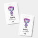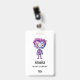 Name badge with a cute illustration. Frankenstein monster with pink and purple hair and a dapper coat and tie.