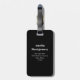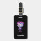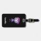 A luggage tag with a cute illustration. Frankenstein monster with pink and purple hair and a dapper suit and tie.