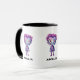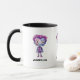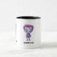 A mug with a cute illustration. Frankenstein monster with pink and purple hair and a dapper suit and tie.