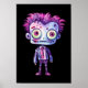 Poster with a cute illustration. Frankenstein monster with pink and purple hair and a dapper coat and tie.