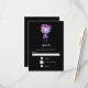 An RSVP card with a cute illustration. Frankenstein monster with pink and purple hair and a dapper suit and tie.