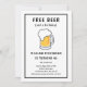 Celebrate a milestone with this humourous and minimalist birthday invitation. Perfect for a guy's party, this design features a bold, cheeky joke about "FREE BEER" that's sure to get a laugh. The simple and modern black and white design with a frothy beer mug illustration sets a fun, casual tone for a birthday bash. This fully customisable invitation template is easy to personalise with all your party details. It's a great choice for a beer-themed party, bar crawl, or any casual gathering to celebrate turning legal.