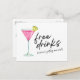 Funny budget friendy save the date postcards for the fun couple who can't wait to celebrate with family and friends at their wedding. Free drinks (and we're getting married!) colourful cocktail design is personalised with your wedding details.